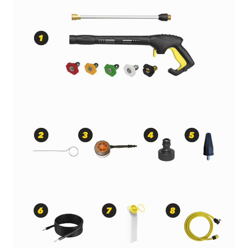 Hidrolavadora de alta presión ideal para una limpieza diaria más frecuente. Dispone de asa y ruedas que facilitan el transporte, soporte para accesorios facilitando la organización. Ideal para la limpieza de garajes, patios, coches, bicicletas, motos, piscinas. Con motor de inducción. Ofrece una limpieza eficiente, rápida y sin esfuerzo.