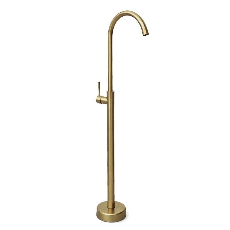 Eleva el diseño de tu baño con esta sofisticada grifería monomando para tina en acabado dorado mate. Su diseño de piso aporta un estilo moderno, elegante y de alto impacto visual, ideal para tinas exentas o tipo isla.