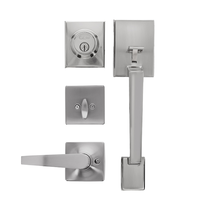 Cerradura principal diseño contemporáneo en zinc, ideal para puertas de 35 a 44 mm con centro ajustable de 60 a 70 mm. Una opción moderna y resistente para entradas seguras con estilo.
