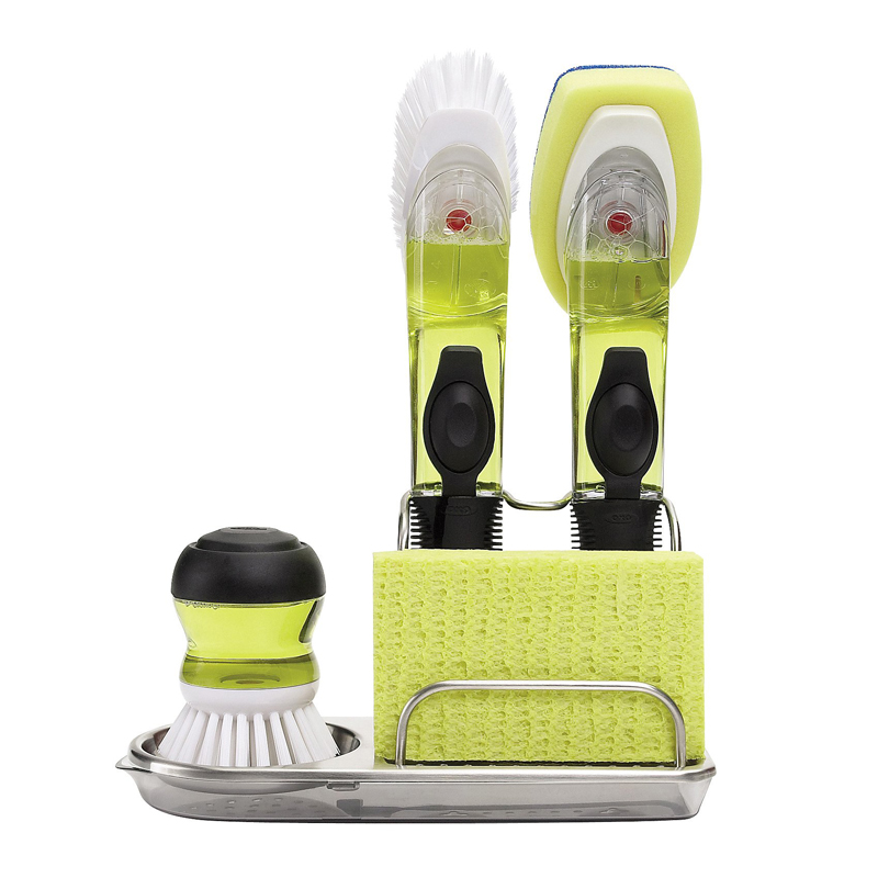 Mantén todos los productos de limpieza organizados en este práctico organizador que permite ganar espacio al tener todas las herramientas de limpieza organizadas en un solo elemento. Espacios separados para 2 cepillos, 1 dispensador de jabón y 1 esponja (artículos no incluidos). Su base perforada permite tener las esponjas secas, y su bandeja es extraible para una fácil limpieza. Fabricado en acero inoxidable..