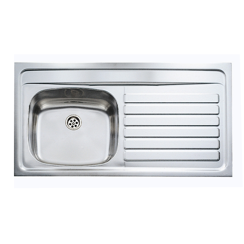 Fregadero de cubeta y escurridor, acero inoxidable 18/10, profundidad de la cubeta 16 cm y mueble de 45 cm.