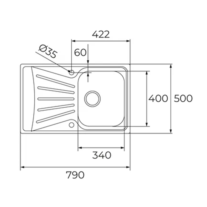Fregadero tipo inset de acero inoxidable que combina una cubeta con escurridor y dispone de instalación reversible. Incluye sistema de autodesagüe y está diseñado para ofrecer versatilidad funcional y estética en cocinas modernas.