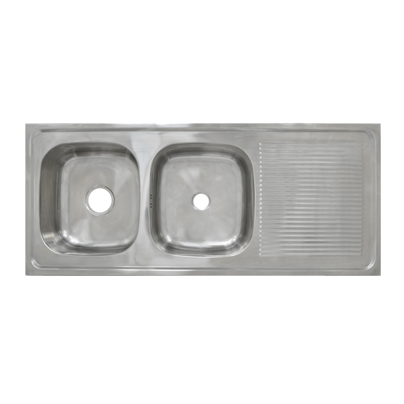 Lavadero de acero inoxidable 201, espesor de 0.6, con dos pozos y un escurridor izquierdo, ideal para su cocina viene con rebosadero. La instalación del lavadero es de sobreponer. No incluye 2 válvulas. Una de 70 mm ( código 69020 ) y una de 110 mm (código 69021 ).