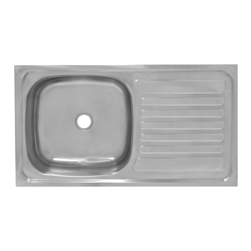 Lavadero de acero inoxidable 201, espesor de 0.4mm, con un pozo y un escurridor reversible, ideal para su cocina. La instalación del lavadero es de empotrar. No incluye válvula de 63 mm ( codigo 69019).