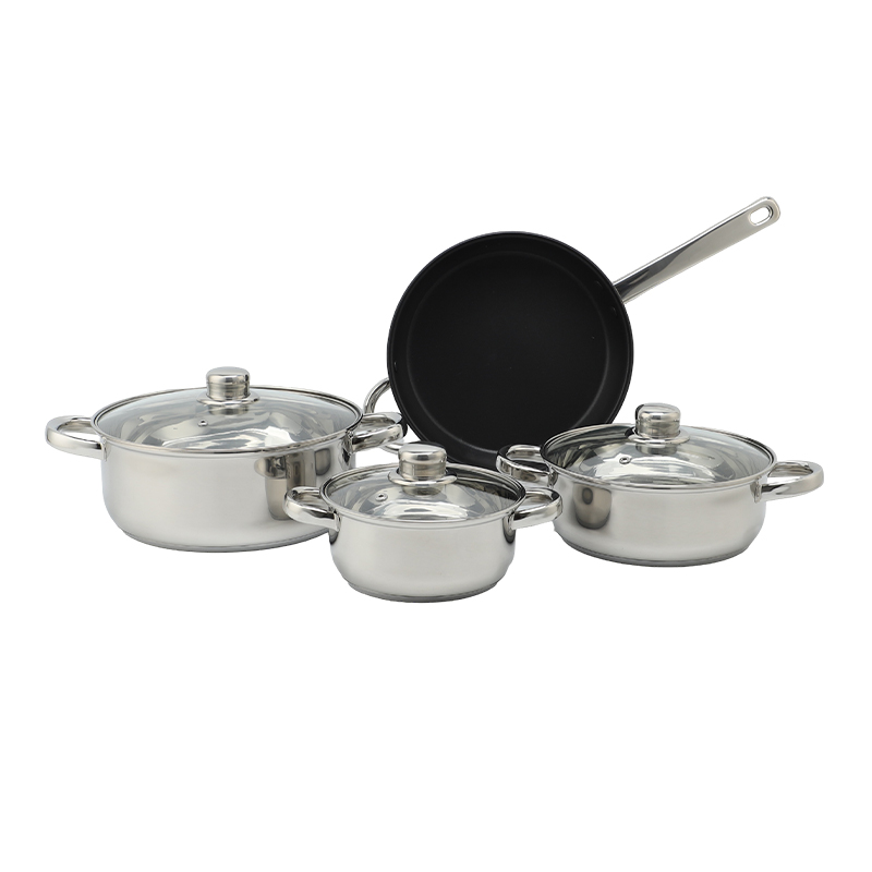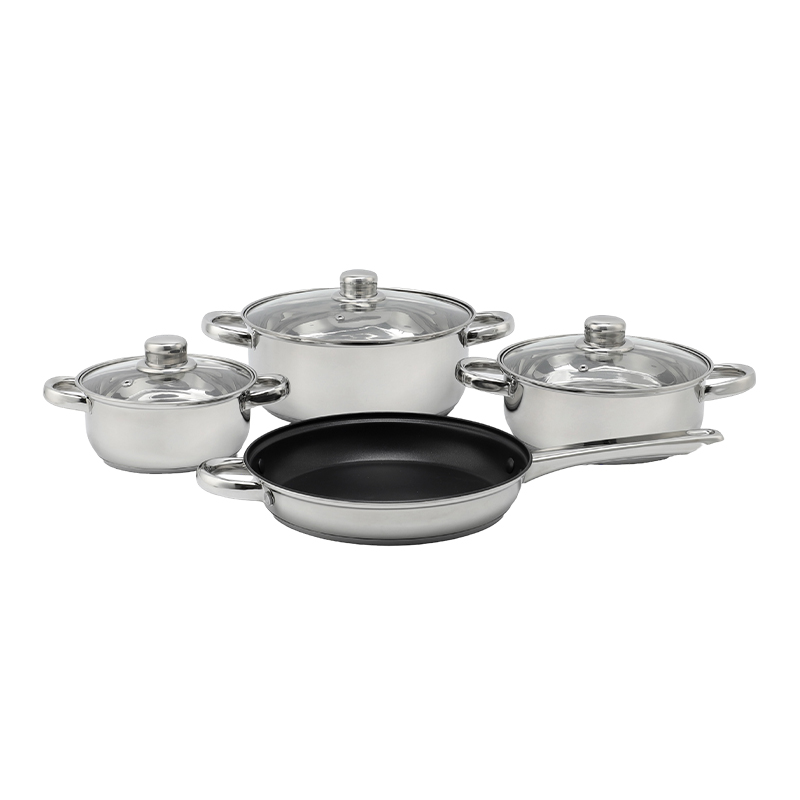 Renueva tu cocina con este completo juego de ollas de acero inoxidable, ideal para preparar todo tipo de recetas con estilo y durabilidad. Su diseño elegante y resistente garantiza una cocción uniforme, mientras que sus tapas de vidrio templado permiten supervisar fácilmente cada preparación. Además, incluye un sartén con recubrimiento antiadherente para cocinar de manera práctica y saludable.