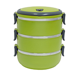 Contenedor diseñado para el almacenamiento y transporte de aperitivos fríos y calientes. Además cuenta con un porta cubiertos que se adhiere en la parte superior del contenedor.