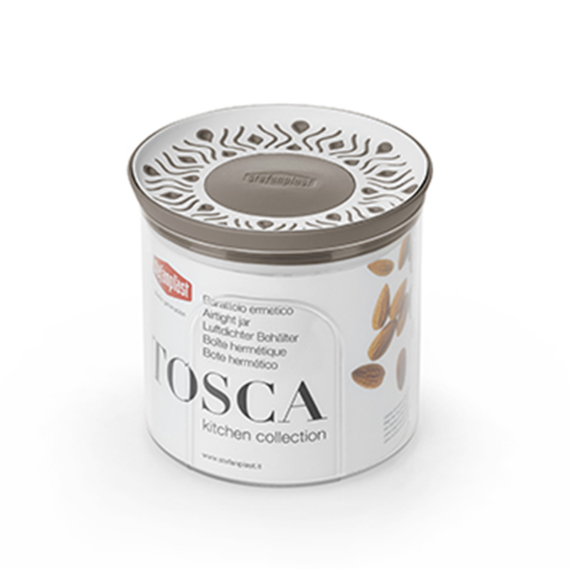 Repostero de plástico transparente, redondo, con tapa con cierre hermético ideal para conservar la frescura de los alimentos. La transparencia del producto permite controlar el contenido del interior y el diseño refinado garantiza un agarre seguro. Fabricado con materiales de alta calidad, sin BPA, es apto para lavavajillas y superponible con otros botes de la misma forma.