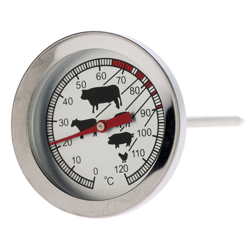 Con este excelente termómetro para carne de acero inoxidable, siempre tendrá carne bien cocida. El termómetro le permite ver con precisión la temperatura de la carne, garantizando así un plato perfecto. ¿No sabe exactamente cuántos grados necesita cada tipo de carne? ¡No hay problema! El termómetro indica la temperatura ideal para cada tipo de carne. Solo tiene que insertar el termómetro en la carne y comprobar si está lista. El termómetro mide hasta 120 grados.
