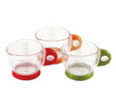 La superficie en ángulo patentada le permite ver las marcas de medición desde arriba mientras se está vertiendo, por lo que puede medir mejor los ingredientes sin doblar o levantar la copa a la altura de los ojos. Contiene marcas para tazas, onzas y mililitros.