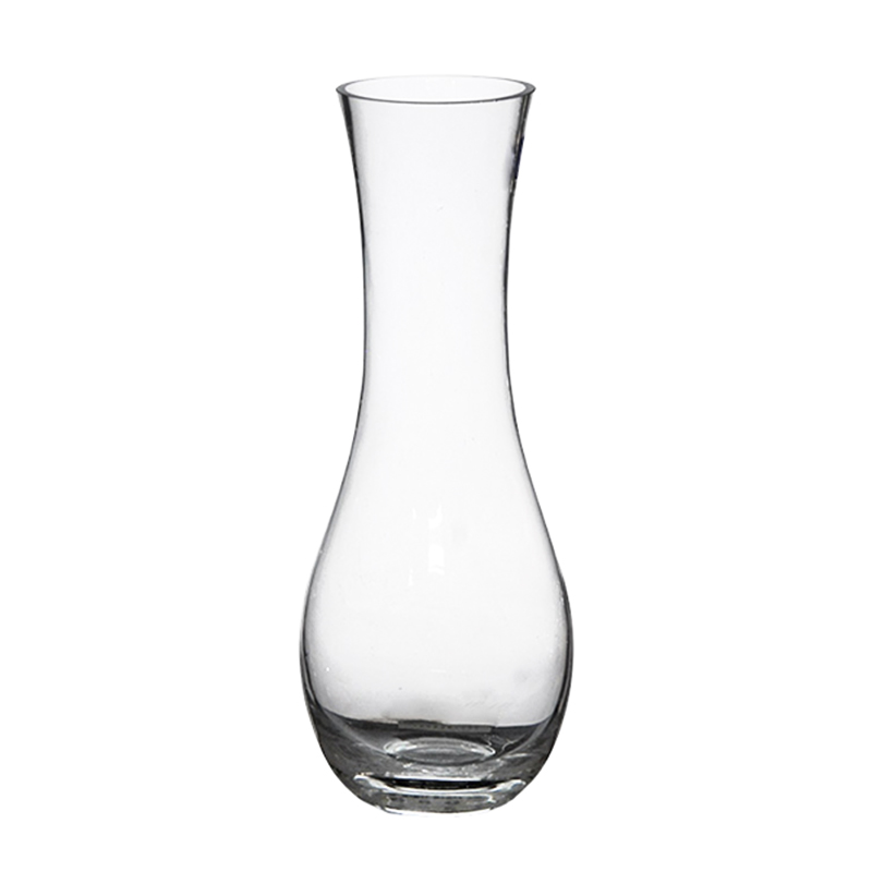 Elegante florero de vidrio transparente con diseño clásico en forma de gota y cuello estilizado. Su silueta delicada resalta la belleza de las flores y se adapta perfectamente a cualquier tipo de decoración, aportando un toque de sencillez y elegancia a los espacios.