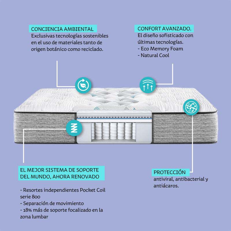 Cada colchón Beautyrest® Harmony incorpora exclusivas tecnologías sostenibles en el uso de materiales tanto de origen botánico como reciclados, aportando un granito de arena con cada colchón para un mundo más limpio y libre de plásticos.