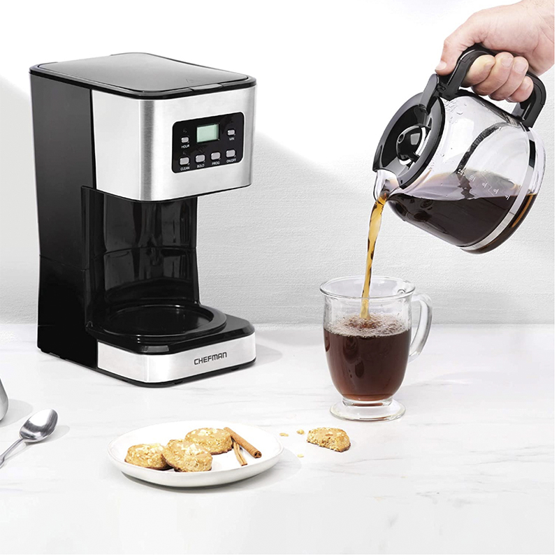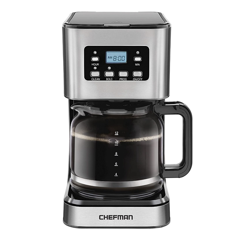 Cafetera 12 Tazas Programable Digital Función Bold Con Jarra de Vidrio Acero Inoxidable Chefman