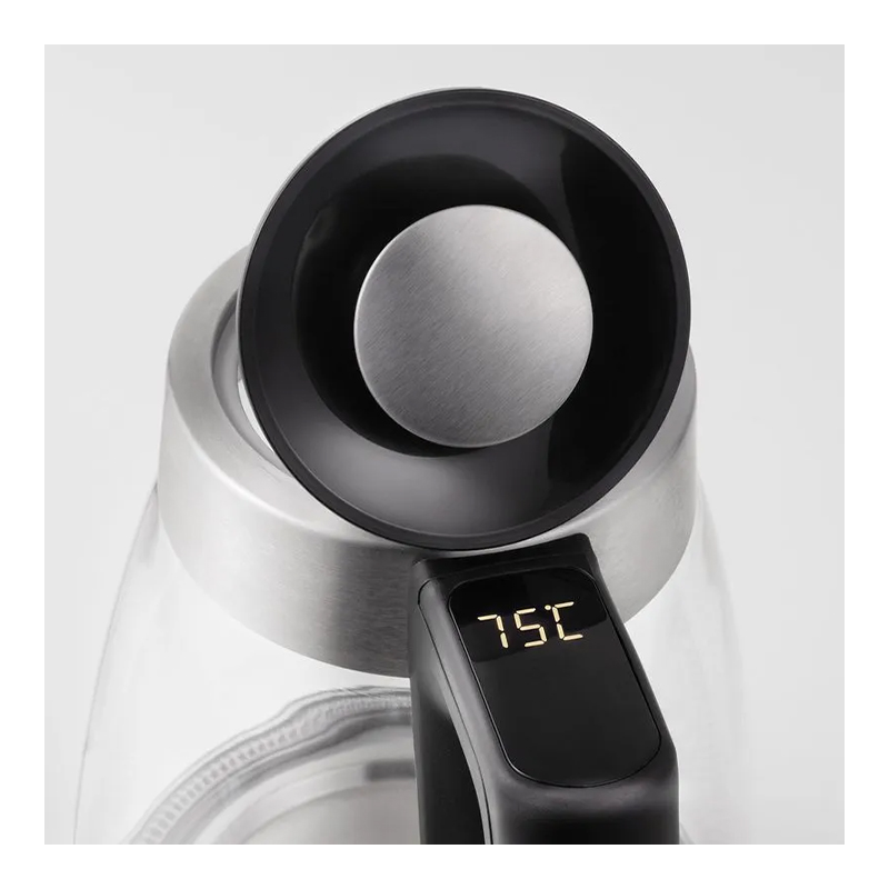 Hervidor eléctrico de vidrio con base metálica, diseñado para calentar agua de manera rápida y práctica. Su estilo moderno y funcionalidad lo convierten en un aliado ideal para la cocina y el día a día.