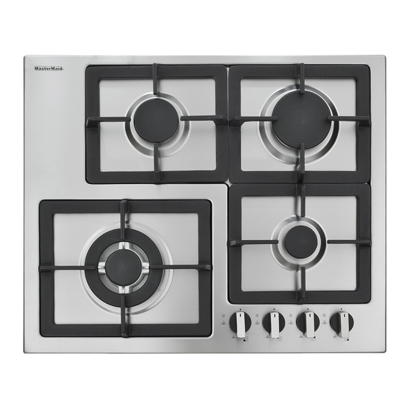 Cocina a Gas con 3 Quemadores +1 Triple Llama de Acero Inoxidable 62x51cm Mastermaid