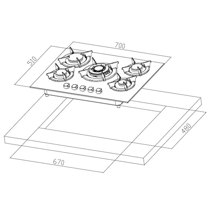 COCINA MASTERM.CRIST.STYLO 4G+1TC 70X50C