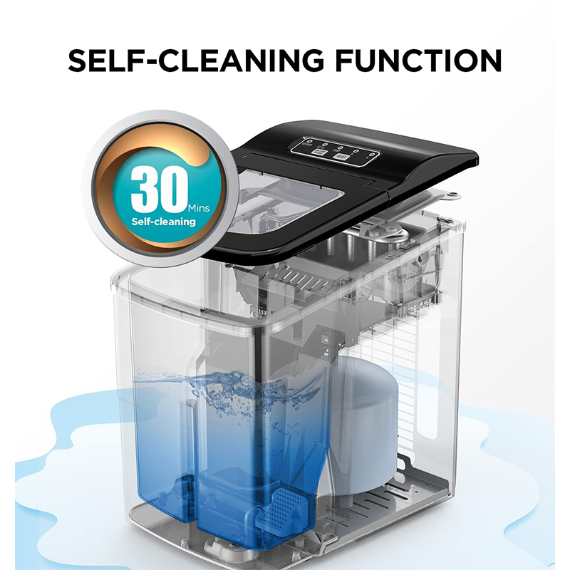 Fabrica hasta 1300 cubos de hielos por día, su cubierta es de acero inoxidable. Sistema de enfriamiento altamente eficiente. Micro computadora automática que controla todo el proceso de fabricación de hielo, se apaga cuando el tanque de agua está vacío o el tanque para cubos de hielo está lleno.