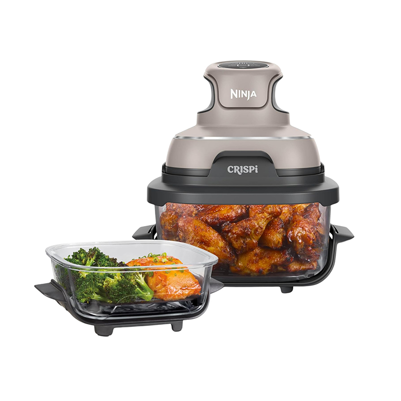 Sistema todo en uno: incluye el Ninja Crispi PowerPod, recipientes de vidrio CleanCrisp de 4 cuartos y 6 tazas, y 2 tapas de almacenamiento.