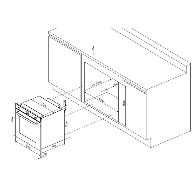 Horno empotrable a gas con elegante acabado totalmente negro, ideal para cocinas modernas y minimalistas. Ofrece una cocción uniforme y eficiente gracias a su sistema de calor envolvente, permitiendo preparar platillos con resultados profesionales. Sus perillas de control facilitan el ajuste de temperatura, funciones y tiempo de cocción.