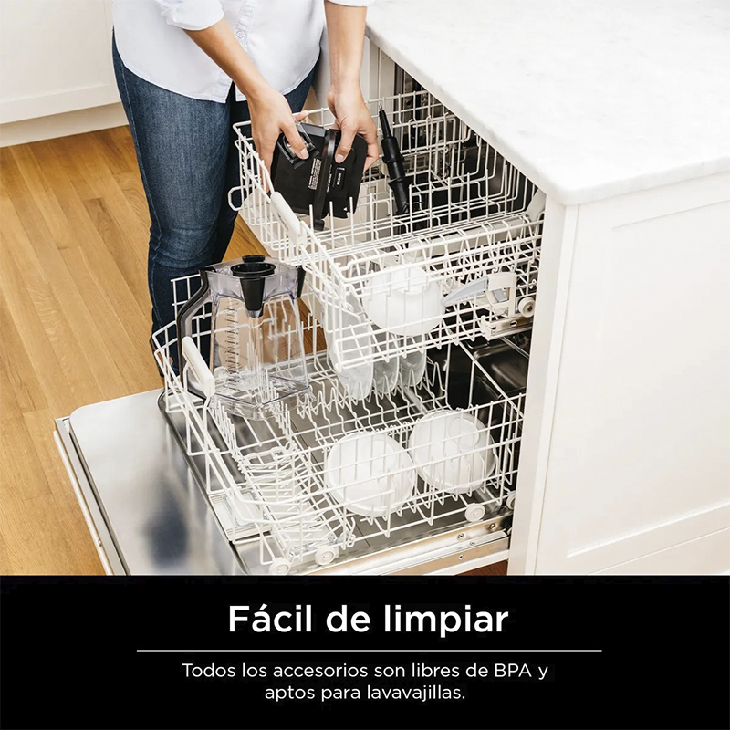 INCLUYE: Base de motor de 1400 vatios pico, jarra de trituración total de 72 onzas, montaje de cuchilla apilada, tapa, guía de instrucciones y guía de inicio rápido.
