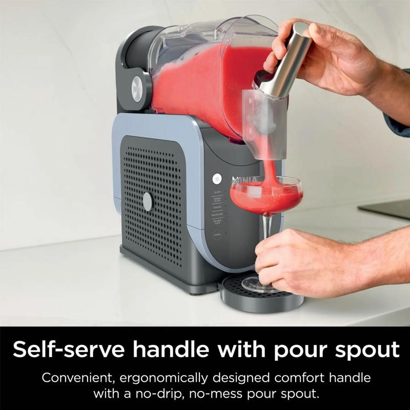 Máquina de bebidas congeladas tipo granizado de la serie Ninja, modelo FS301, diseñada para preparar slushies, frappés y cócteles congelados de forma rápida y automática. Gracias a su tecnología de enfriamiento rápido, permite obtener texturas suaves sin necesidad de hielo adicional, ideal para reuniones, eventos o uso en hogar con estilo profesional.