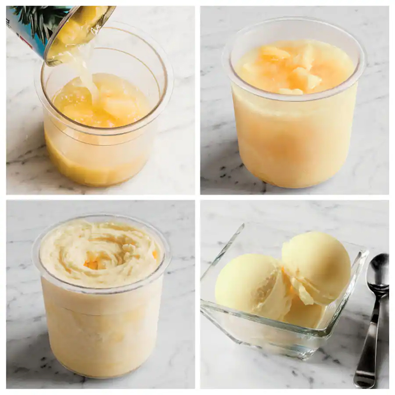 Tecnología: transforma bases congeladas en helado, sorbete, batido o smoothie bowl mediante sistema automatizado.