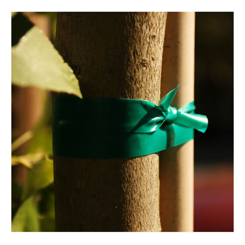 Rollo de cinta verde para tutorar o atar plantas, permite el buen crecimiento de la planta sin estrangularla.