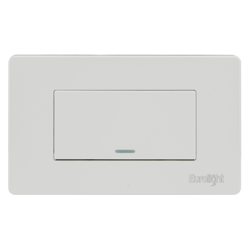 Interruptor sencillo de 1 vía, con luz en el botón que indica el encendido y apagado del interruptor, amperaje 10A.