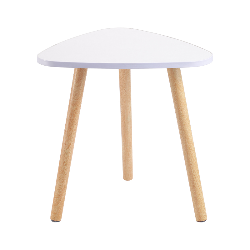 Mesa auxiliar de diseño contemporáneo con forma triangular suavizada, ideal para espacios modernos y minimalistas. Su estructura ligera y estética natural la convierten en un complemento funcional y decorativo para el hogar.