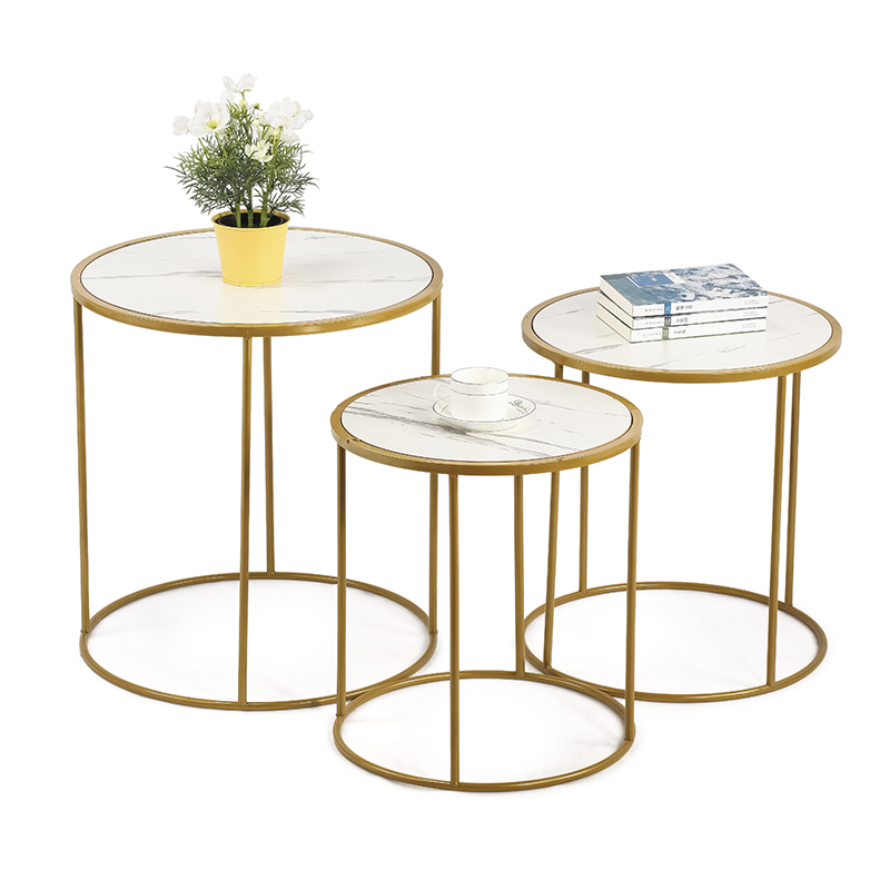 MESAS AUXILIARES 47-42-37CM BCO/DORADO