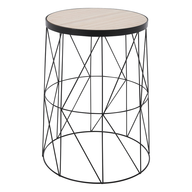 Mesa realizada en varillas de metal en color negro. El tablero de la mesa está hecho de MDF en color natural. La mesa funciona perfectamente como un práctico mueble, una mesa de café o una mesita de noche. Destacará perfectamente el carácter de loft del interior, así como los interiores antiguos y modernos.