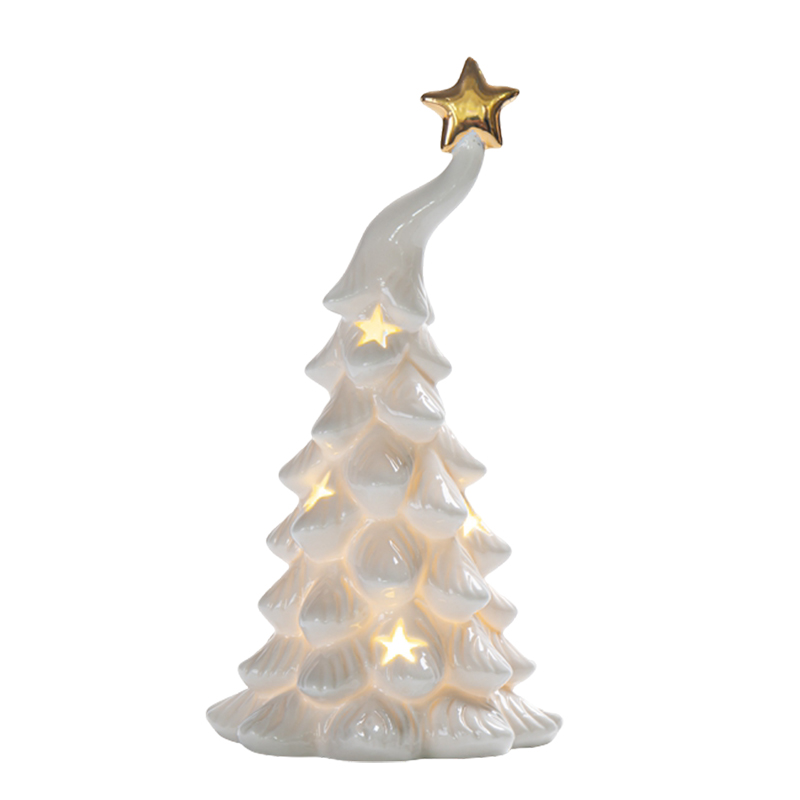 Ilumina tus espacios con este elegante árbol navideño decorativo con luz, diseñado para agregar un toque de magia y sofisticación a tu hogar. Fabricado en cerámica con un acabado brillante en tono blanco, presenta una forma estilizada y detalles delicados que realzan su encanto. Las pequeñas estrellas caladas permiten el paso de una luz cálida que crea un efecto acogedor y festivo, ideal para decorar mesas, repisas, entradas o cualquier rincón especial.