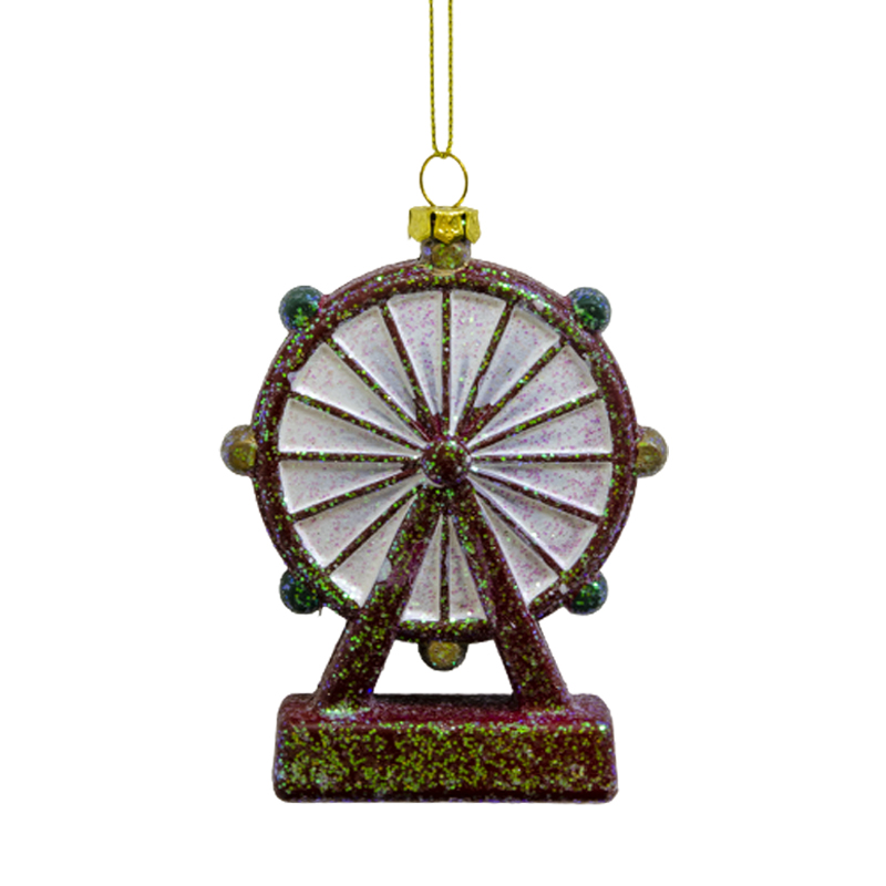 Dale un aire divertido y original a tu árbol con este adorno en forma de rueda de la fortuna. Su diseño brillante y lleno de detalles recuerda la alegría de las ferias, convirtiéndose en una pieza encantadora para realzar la magia navideña en tu hogar.