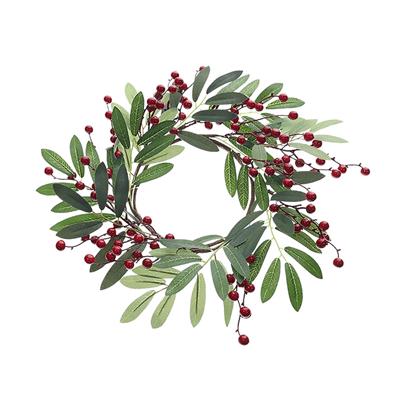 CORONA DE HOJAS Y CEREZOS 40CM