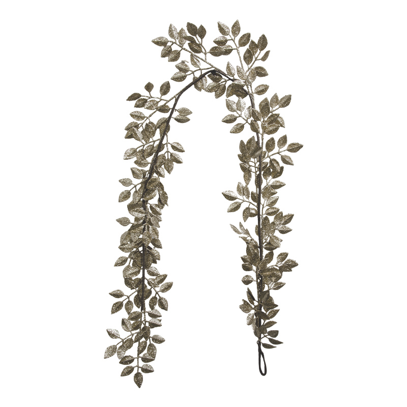 Añade un toque sofisticado y festivo a tu decoración con esta guirnalda de hojas doradas brillantes. Su diseño elegante la convierte en el complemento ideal para adornar árboles de Navidad, escaleras, chimeneas, mesas o puertas, aportando un brillo especial y un aire cálido a cualquier espacio. Perfecta para realzar tus celebraciones con un estilo navideño encantador.