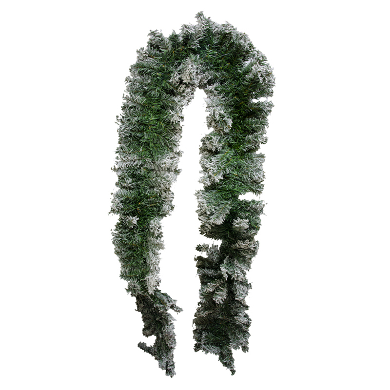 Guirnalda decorativa con acabado nevado, ideal para enmarcar puertas, ventanas, barandas o chimeneas. Aporta un toque natural y festivo al hogar con un estilo invernal muy elegante.