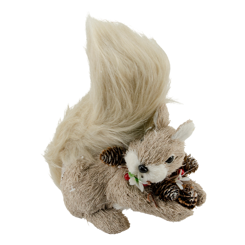 Añade un toque tierno y natural a tu decoración navideña con esta adorable ardilla decorativa. Su acabado realista y la cola esponjosa transmiten calidez, mientras que las piñas y el detalle navideño en sus patas la convierten en un complemento encantador para el árbol, mesas o repisas.