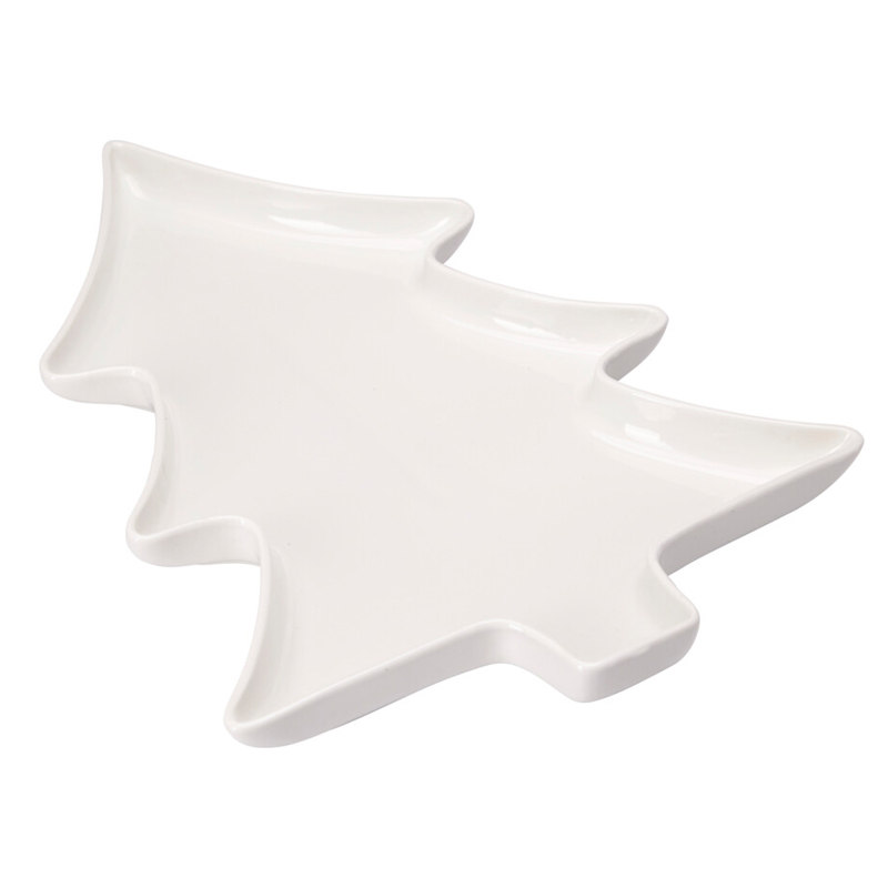 Bandeja con forma de árbol navideño, perfecta para presentar dulces, galletas o aperitivos y darle un toque festivo a la mesa.