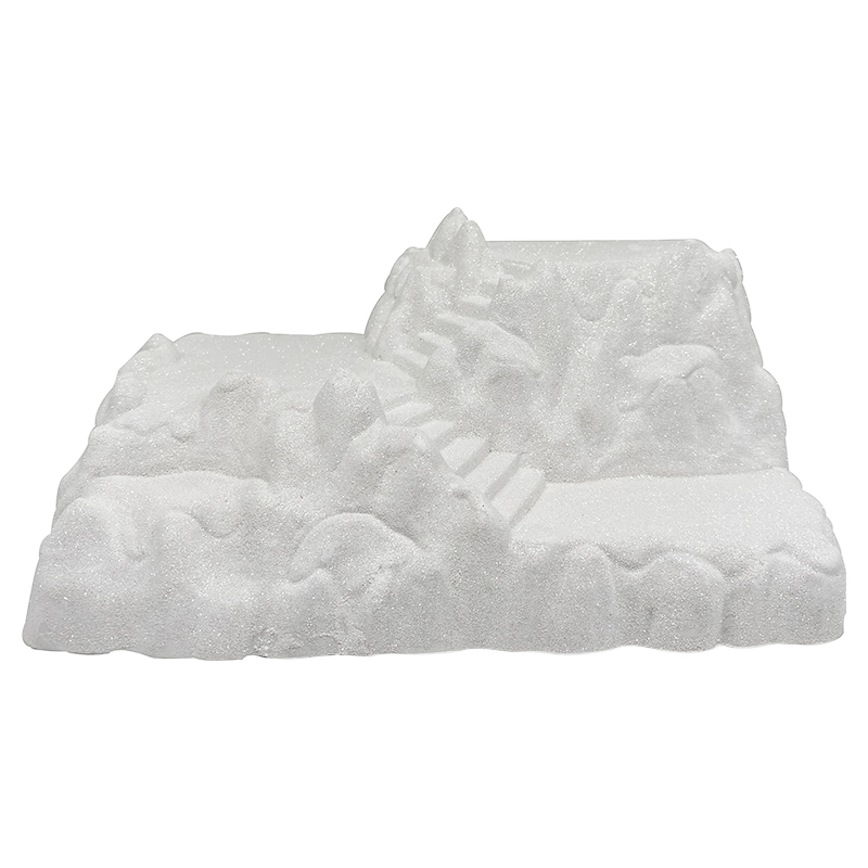 Este adorno decorativo en forma de base nevada es el complemento perfecto para crear hermosas escenas navideñas en tu hogar. Fabricado en material ligero con acabado brillante similar a la nieve, presenta un diseño de montículo con rocas, escalones y diferentes niveles, ideal para colocar figuras decorativas como casitas, renos, Santa Claus, árboles o cualquier elemento de tu aldea navideña.