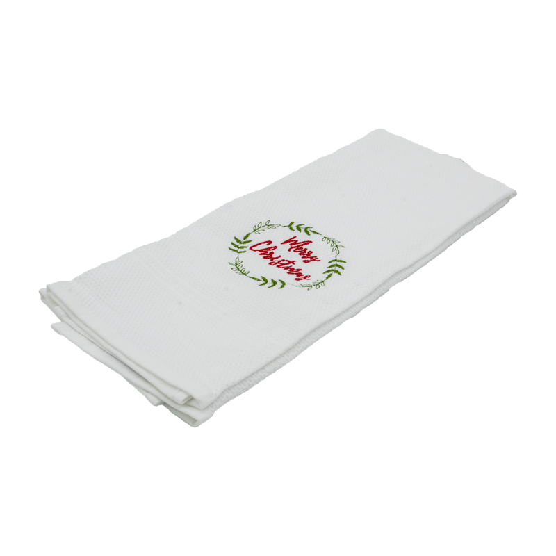 Dale un aire festivo a tu cocina con este elegante limpión de cocina navideño. Su diseño en color blanco con bordado de corona y el mensaje “Merry Christmas” en rojo lo convierte en un detalle encantador para la temporada. Fabricado en tela absorbente y de fácil lavado, es ideal para mantener tu cocina limpia y con espíritu navideño.