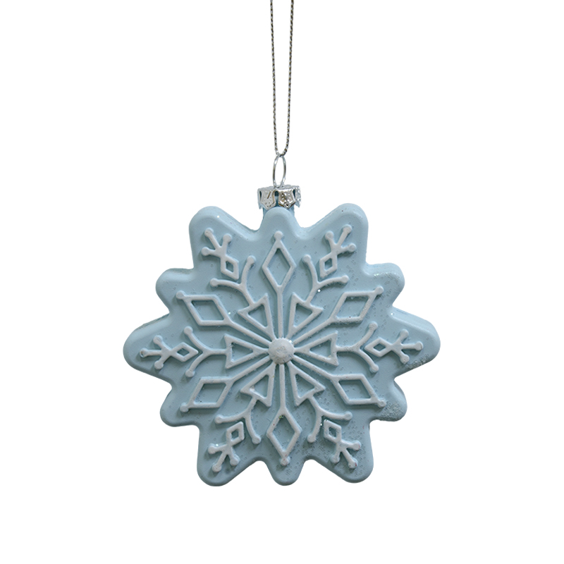 Decora tu árbol de Navidad con un estilo elegante y fresco gracias a este adorno colgante en forma de copo de nieve. Su diseño detallado en color azul con relieves blancos aporta un aire invernal único que combina perfectamente con cualquier decoración navideña. Ideal para realzar el brillo y la magia de la temporada en tu hogar.