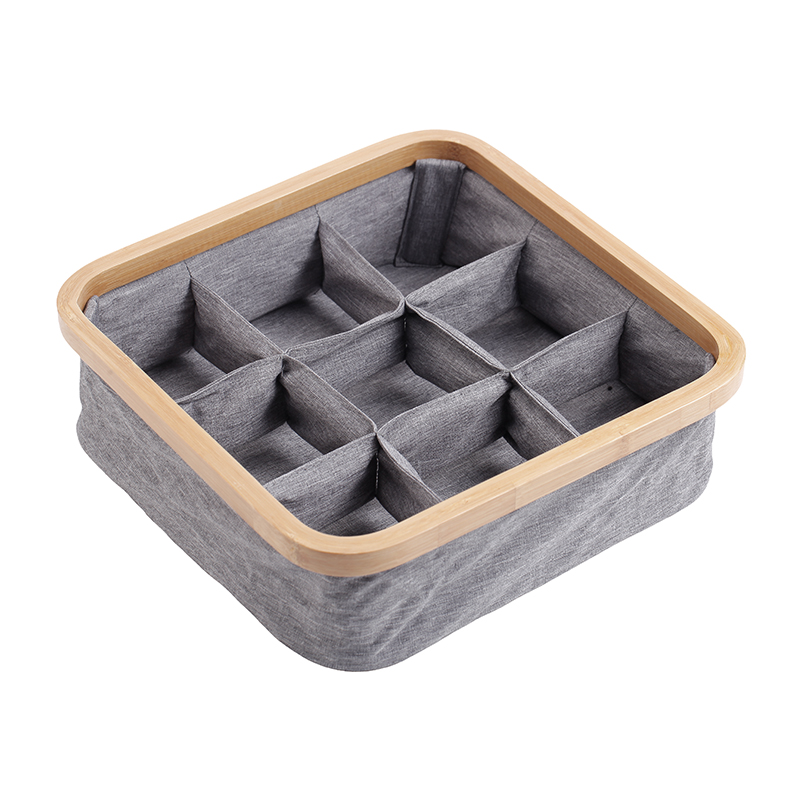 Organizador cuadrado con estructura de borde rígido, ideal para mantener en orden accesorios, ropa interior o artículos pequeños. Su diseño práctico y tejido resistente permiten una organización limpia y estética.
