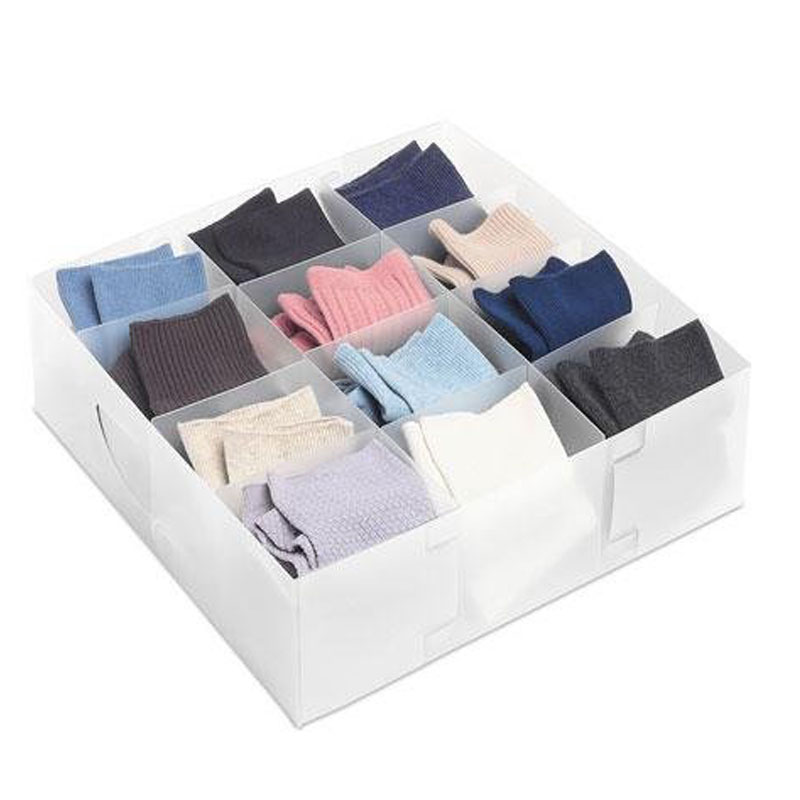 Organizador plástico con divisiones para cajón ideal para guardar tus prendas de vestir, herramientas, artículos de papelería y mucho más.