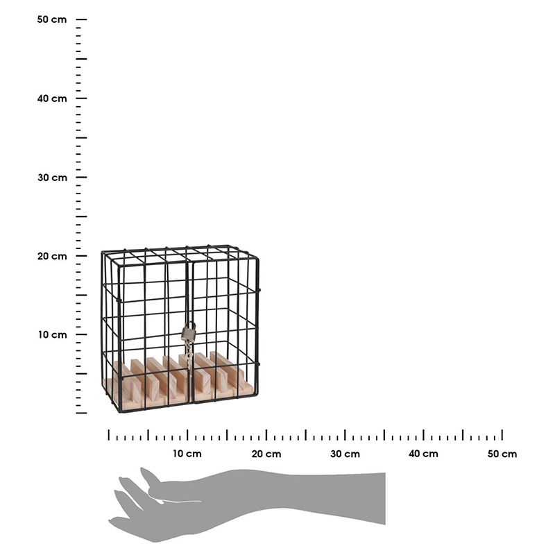 Soporte en forma de jaula con candado con espacio para 6 teléfonos móviles. Un gran gadget que será una divertida idea de regalo. Funcionará bien en reuniones sociales para limitar la capacidad de los participantes para usar el teléfono. Gracias a este soporte, será posible centrar su atención en asuntos importantes sin distraerse con el teléfono. La jaula de metal se cierra con un candado y su base de madera le permite dejar y guardar sus teléfonos de manera segura.