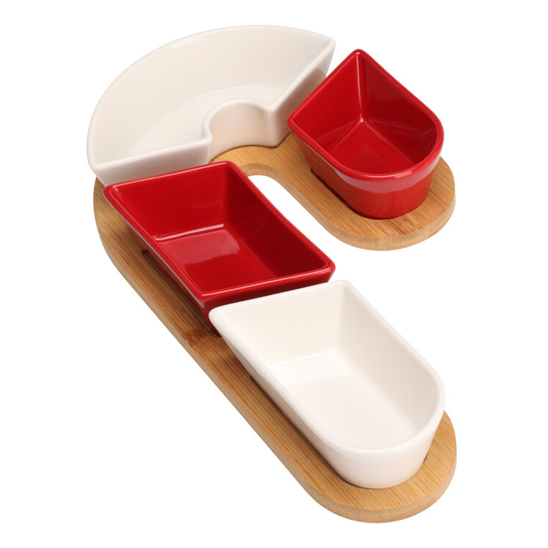 Luce tu mesa en estas fiestas con este elegante set de servir navideño. Incluye una base de bambú en forma de bastón de caramelo y recipientes de cerámica que combinan funcionalidad con un diseño festivo. Perfecto para presentar snacks, salsas, frutos secos o dulces en tus reuniones familiares.